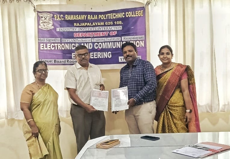 On 17.10.2025, Beycan signed an MoU with the ECE Department of P.A.C.R. Polytechnic College, reinforcing a partnership for technical education, innovation, and student skill enhancement.